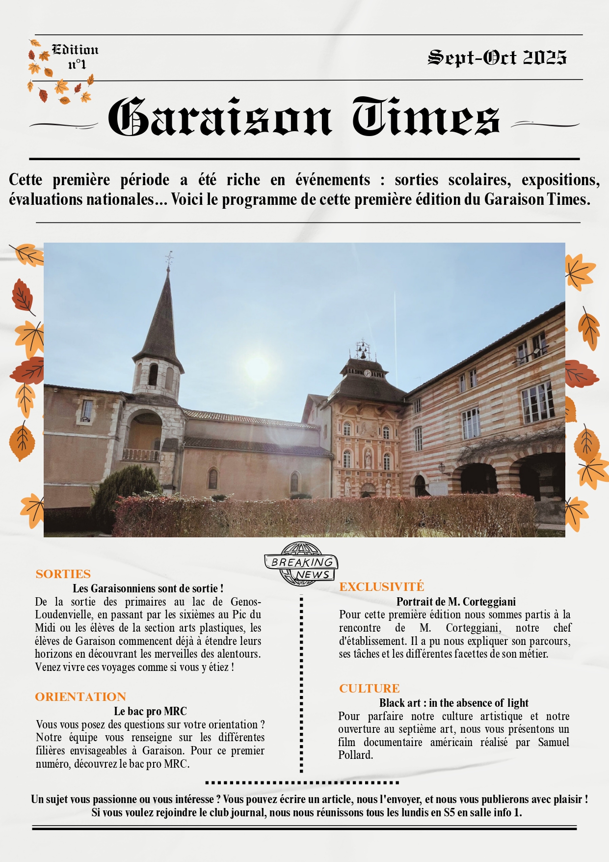 L’Institution Notre-Dame de Garaison, au carrefour des Hautes-Pyrénées, du Gers et de la Haute-Garonne est un établissement privé, mixte, sous contrat d’association avec l’Etat, qui accueille des élèves demi-pensionnaires et internes en école, collège, lycée général, technologique et professionnel en formation initiale et apprentissage.