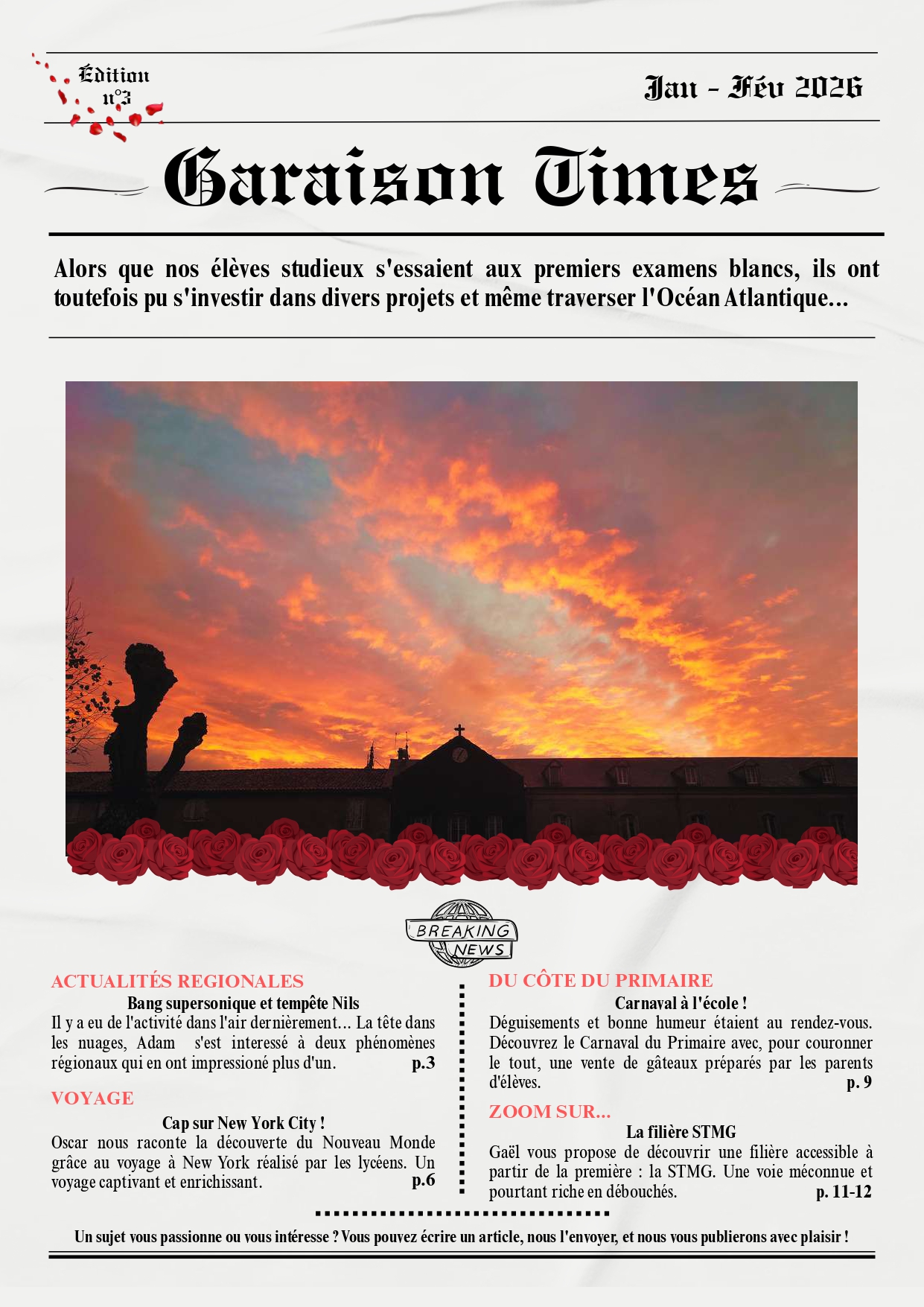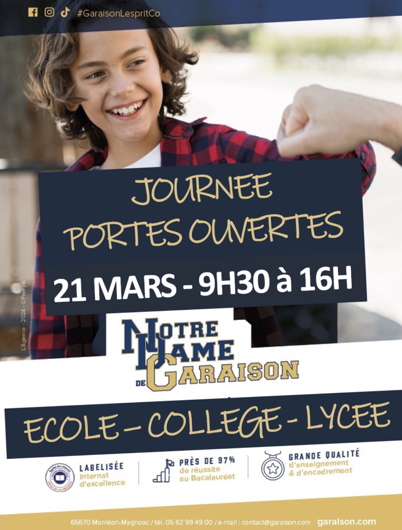 L’Institution Notre-Dame de Garaison, au carrefour des Hautes-Pyrénées, du Gers et de la Haute-Garonne est un établissement privé, mixte, sous contrat d’association avec l’Etat, qui accueille des élèves demi-pensionnaires et internes en école, collège, lycée général, technologique et professionnel en formation initiale et apprentissage.